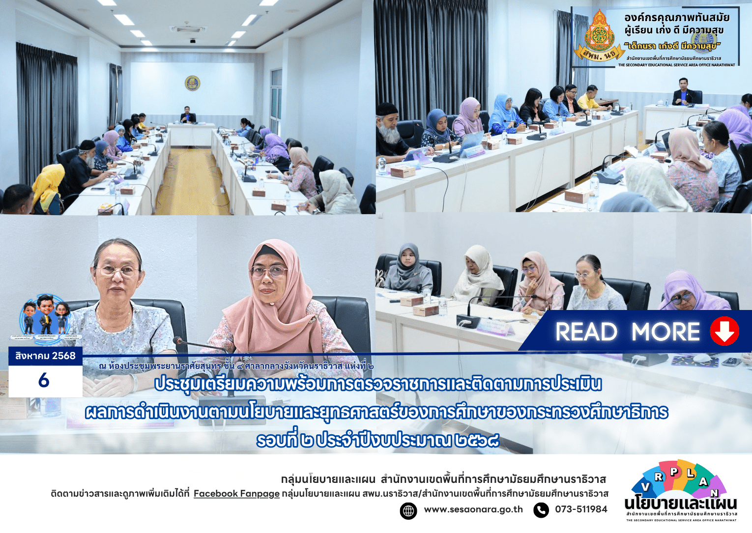 View detailsประชุมเตรียมความพร้อมการตรวจราชการและติดตามการประเมินผลการดำเนินงานตามนโยบายและยุทธศาสตร์ของการศึกษาของกระทรวงศึกษาธิการ รอบที่ ๒ ประจำปีงบประมาณ ๒๕๖๘
