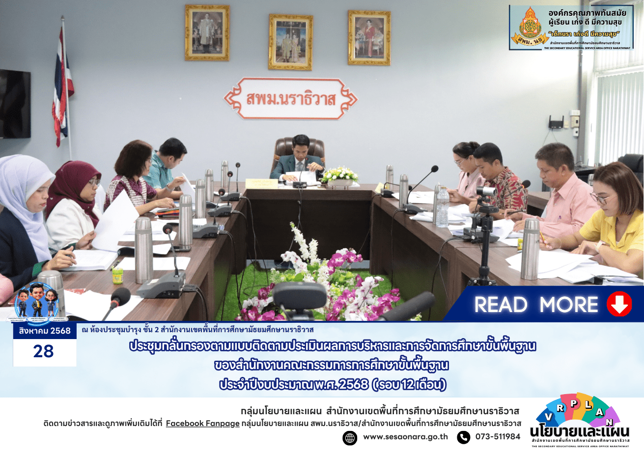 View detailsประชุมกลั่นกรองตามแบบติดตามประเมินผลการบริหารและการจัดการศึกษาขั้นพื้นฐานของสำนักงานคณะกรรมการการศึกษาขั้นพื้นฐานประจำปีงบประมาณ พ.ศ. 2568( รอบ 12 เดือน)
