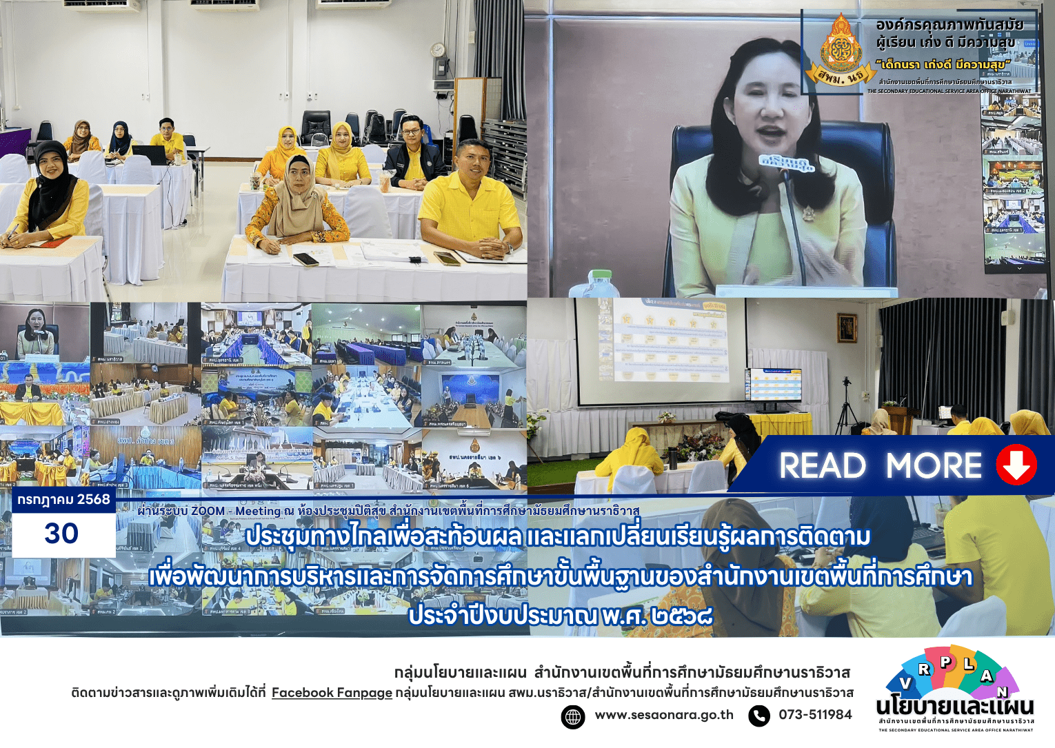 ประชุมทางไกลเพื่อสะท้อนผล และแลกเปลี่ยนเรียนรู้ผลการติดตาม เพื่อพัฒนาการบริหารและการจัดการศึกษาขั้นพื้นฐานของสำนักงานเขตพื้นที่การศึกษา ประจำปีงบประมาณ พ.ศ. 2568
