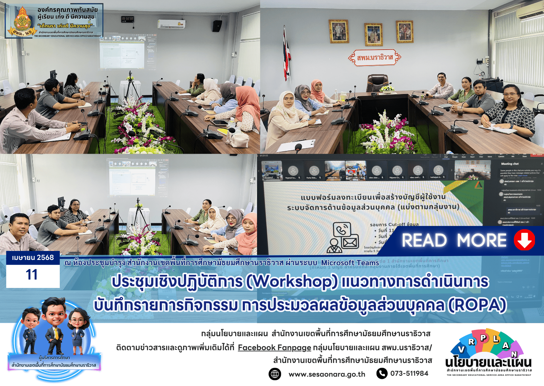 View detailsการประชุมเชิงปฏิบัติการ (Workshop) แนวทางการดำเนินการ บันทึกรายการกิจกรรม การประมวลผลข้อมูลส่วนบุคคล (ROPA)