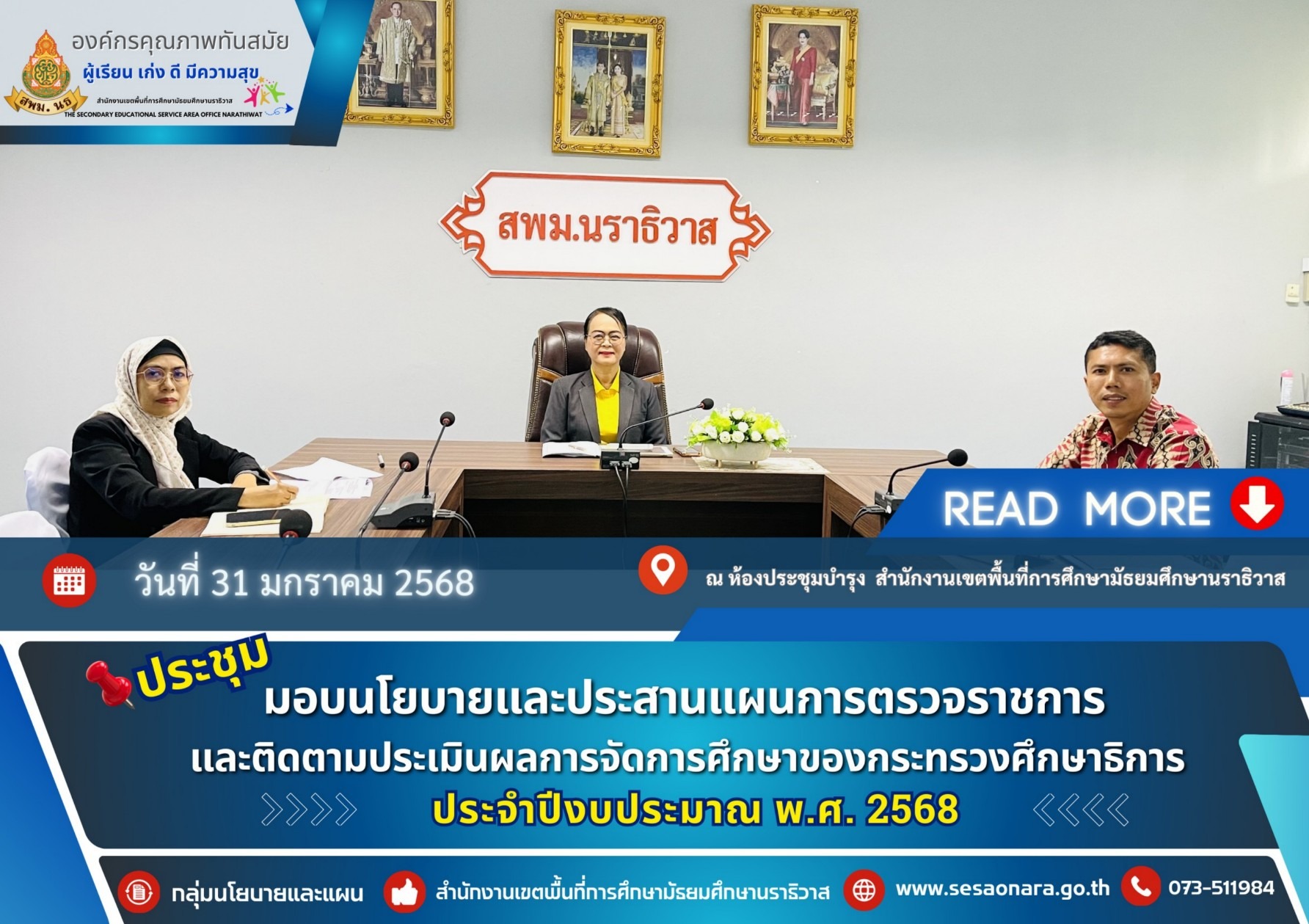 ประชุมสร้างความเข้าใจ การติดตามประเมินผล การบริหารและจัดการการศึกษาขั้นพื้นฐาน ประจำปีงบประมาณ พ.ศ 2568