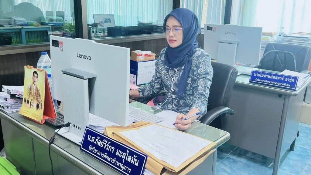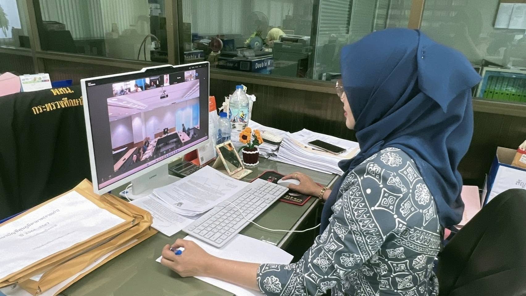 วันพฤหัสบดีที่ 24 กรกฎาคม 2568 เวลา 13.30 น. นายสุรศักดิ์ เกลี้ยงสะอาด ผอ.สพม.นราธิวาส มอบหมาย ให้ น.ส.กัลย์วีร์กร มะสุไลมัน นักวิชาการศึกษาชำนาญการ เข้าร่วมประชุมคณะกรรมการดำเนินโครงการทุนอุดมศึกษาเพื่อการพัฒนาจังหวัดชายแดนภาคใต้ ครั้งที่ 2/2568 เพื่อพิจารณาผลการสอบสัมภาษณ์ของคณะกรรมการสอบสัมภาษณ์เพื่อคัดเลือกผู้สมัครรับทุนโครงการฯ ระยะที่ 4 ปีการศึกษา 2567 (กลุ่มที่ 2 สำหรับนักเรียนที่สามารถสอบเข้าศึกษาในสถาบันอุดมศึกษาได้) จัดโดย สำนักงานปลัดกระทรวงการอุดมศึกษา วิทยาศาสตร์ วิจัยและนวัตกรรม ผ่านระบบสื่ออิเลกทรอนิกส์ ระบบ Zoom meeting โดยมี นางสาววราภรณ์ รุ่งตระการ รองปลัดกระทรวงการอุดมศึกษา วิทยาศาสตร์ วิจัยและนวัตกรรม เป็นประธานในการประชุมฯ