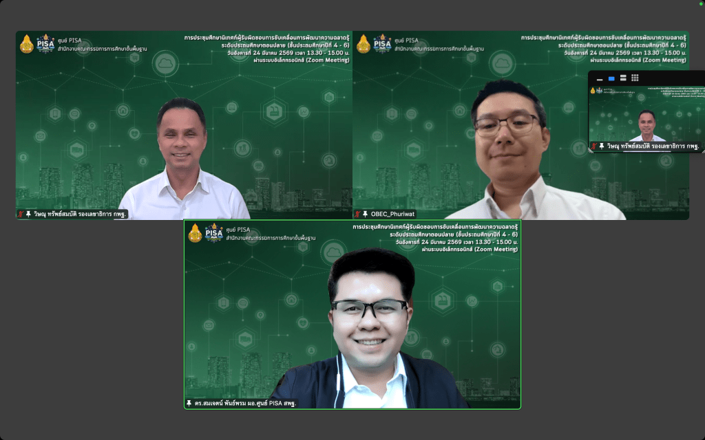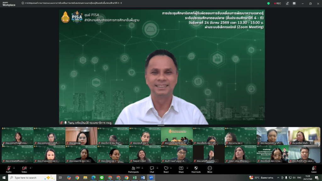 วันอังคารที่ 24 มีนาคม 2569 นายสุรศักดิ์ เกลี้ยงสะอาด ผอ.สพม.นราธิวาส มอบหมายให้ นางสาวเบญจพร สินแสงวัฒน์ ศึกษานิเทศก์ชำนาญการ เข้าร่วมการประชุมคณะทำงานการออกแบบแนวทางการขับเคลื่อนการยกระดับสมรรถนะความฉลาดรู้ของผู้เรียนระดับชั้นประถมศึกษาปีที่ 4-6 ผ่านระบบอิเล็กทรอนิกส์ (Zoom Meeting) เพื่อให้การขับเคลื่อนการยกระดับสมรรถนความฉลาดรู้ของผู้เรียนเป็นไปอย่างมีประสิทธิภาพ สอดคล้องกับหลักสูตรแกนกลางการศึกษาขั้นพื้นฐาน หลักสูตรสถานศึกษา บริบทพื้นที่และสามารถนำไปสู่การปฏิบัติในสถานศึกษาได้อย่างเป็นรูปธรรม เวลา 13.30 – 15.00 น. ณ กลุ่มนิเทศ ฯ สพม.นราธิวาส