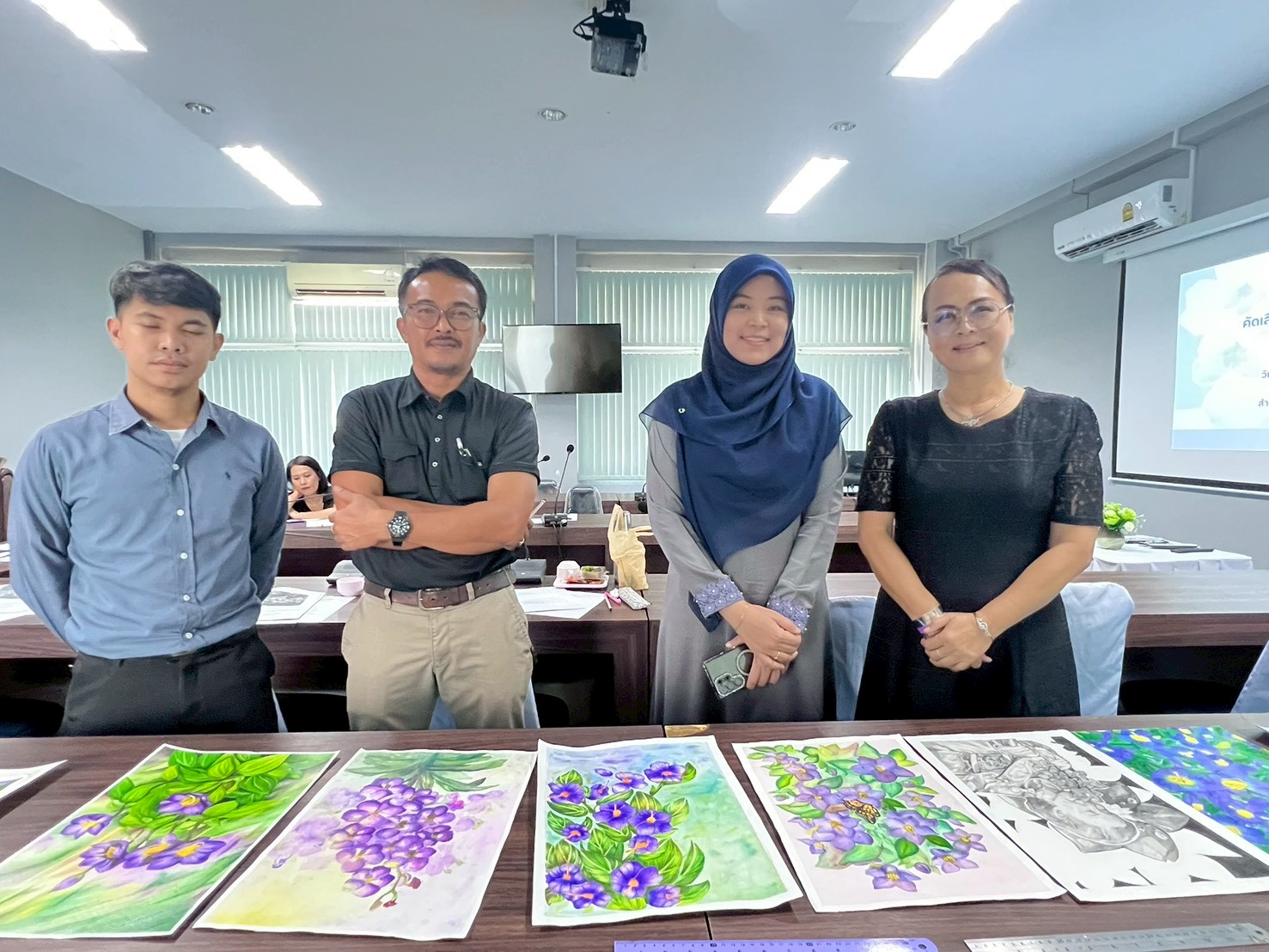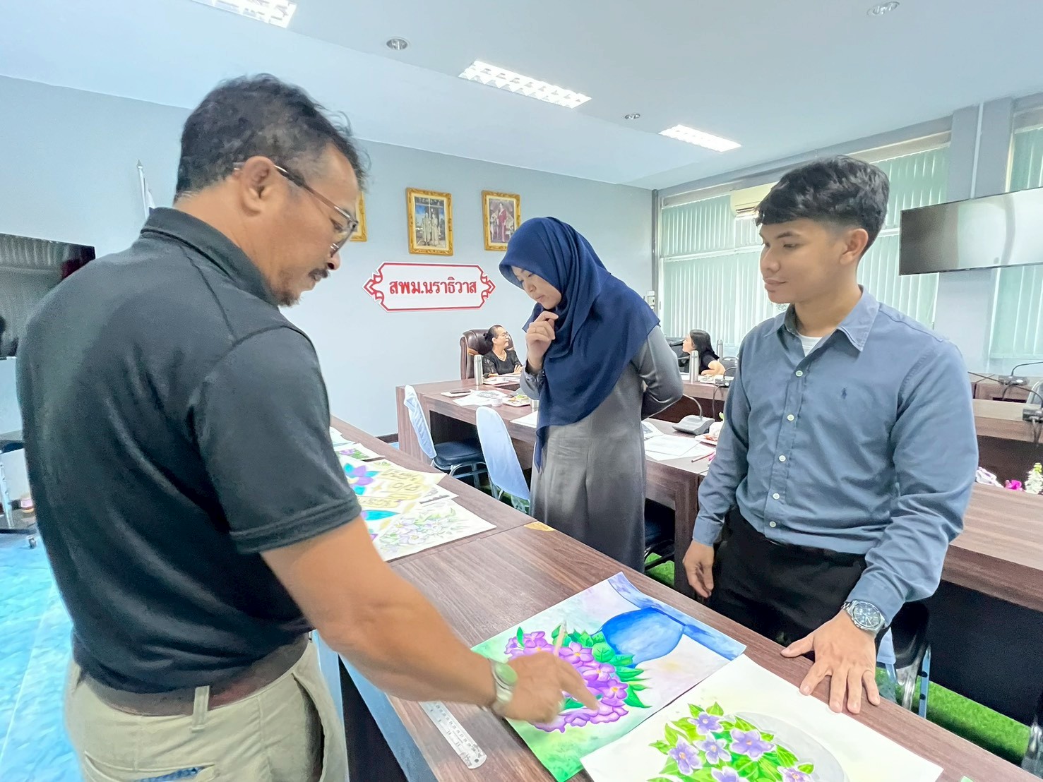วันพฤหัสบดี ที่ 4 ธันวาคม 2568 นายสุรศักดิ์ เกลี้ยงสะอาด ผู้อำนวยการสำนักงานเขตพื้นที่การศึกษามัธยมศึกษานราธิวาส มอบหมายให้ นางปาริชาติ เข่งแก้ว รองผู้อำนวยการสำนักงานเขตพื้นที่การศึกษามัธยมศึกษานราธิวาส เป็นประธานในการประชุมคัดเลือกผลงานภาพวาดดอก “ม่วงเทพรัตน์” ระดับเขตพื้นที่การศึกษา ณ ห้องประชุมบำรุง สพม.นราธิวาส ผลการปฏิบัติเป็นไปด้วยความเรียบร้อย