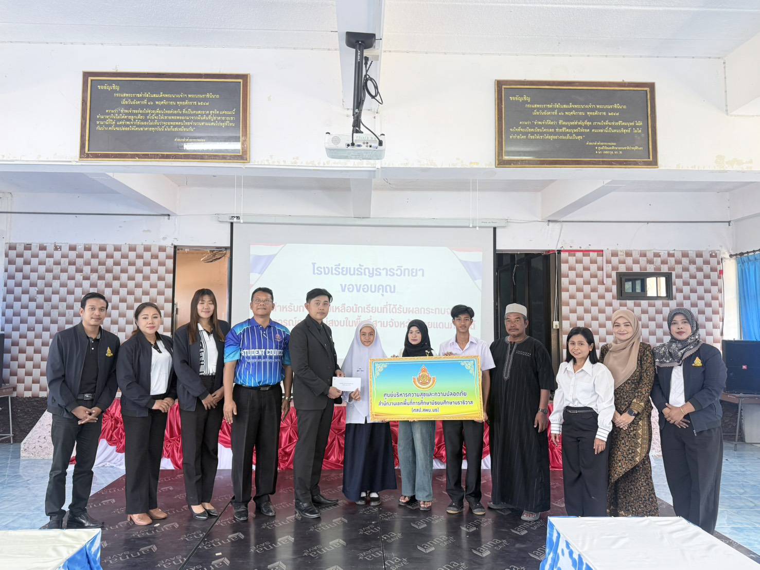 วันที่ 7 เมษายน 2569 นายสุรศักดิ์ เกลี้ยงสะอาด ผอ.สพม.นราธิวาส มอบหมายให้ นายภานุพงศ์ แขดสันเทียะ รองผอ.สพม. นราธิวาส พร้อมด้วยเจ้าหน้าที่กลุ่มส่งเสริมการจัดการศึกษา ลงพื้นที่โรงเรียนธัญธารวิทยา อำเภอสุไหงปาดี จังหวัดนราธิวาส เพื่อเยี่ยมให้กำลังใจครอบครัวเด็กหญิงญัสรินดา ดารอเฮง นักเรียนชั้นมัธยมศึกษาปีที่ 1 และ เด็กชายสาบรี ดารอเฮง นักเรียนชั้นมัธยมศึกษาปีที่ 3 โรงเรียนธัญธารวิทยา ซึ่งบิดาเสียชีวิตจากเหตุการณ์ความไม่สงบฯ เมื่อวันที่ 24 มีนาคม 2569 โดยได้มอบเงินกองทุนเพื่อการศึกษาและช่วยเหลือนักเรียนในสังกัด เพื่อช่วยเหลือและสร้างขวัญกำลังใจให้นักเรียนและครอบครัว