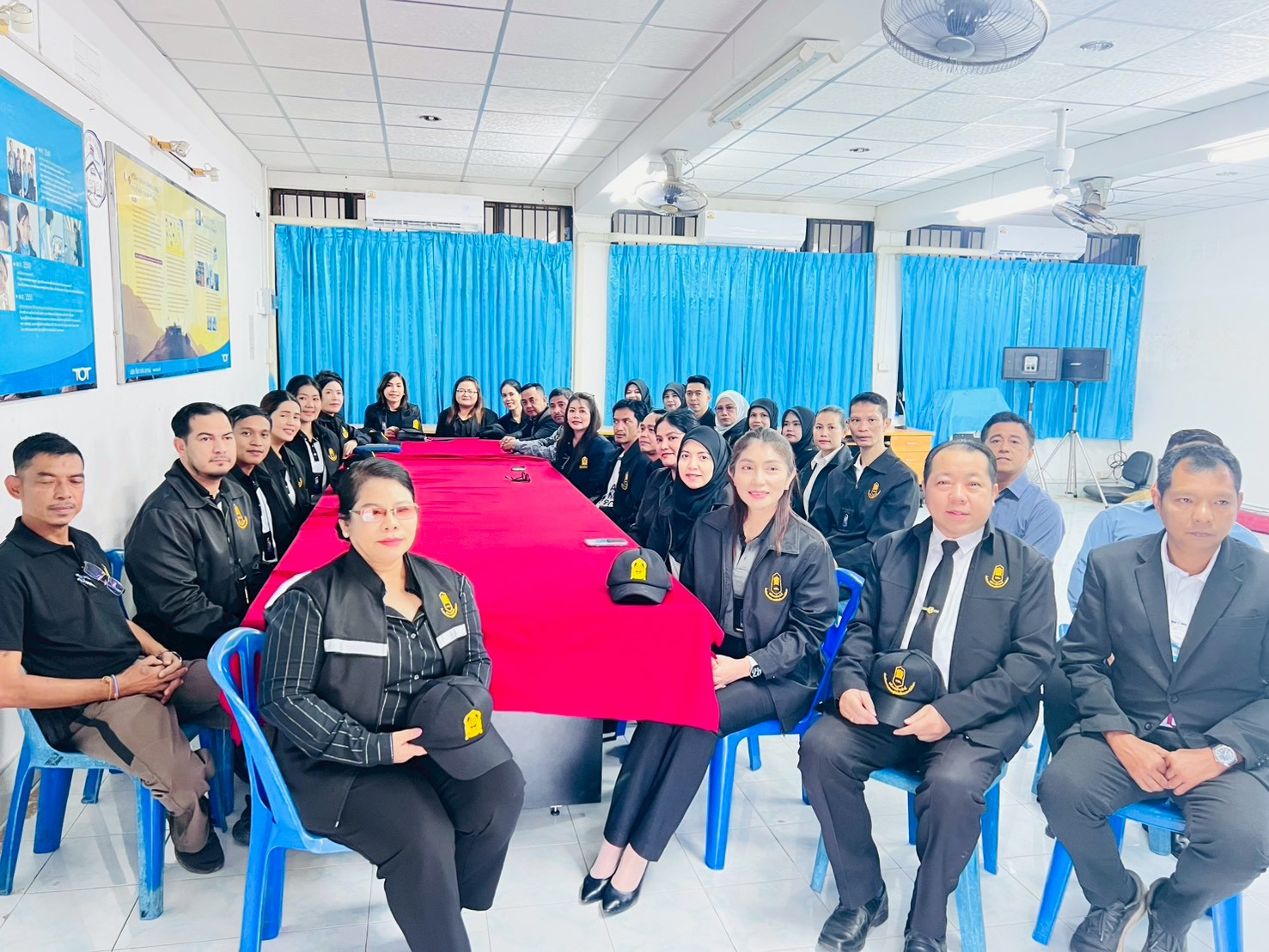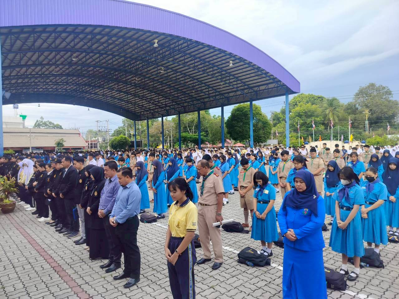 วันพุธที่ 29 ตุลาคม 2568 เวลา 07.30 น. นายสุรศักดิ์ เกลี้ยงสะอาด ผอ.สพม.นราธิวาส มอบหมายให้พนักงานเจ้าหน้าที่ส่งเสริมความประพฤตินักเรียนและนักศึกษา (พสน.) สังกัด สพม.นราธิวาส ลงพื้นที่ร่วมกิจกรรม Kick Off วันเปิดภาคเรียน ภาคเรียนที่ 2 ปีการศึกษา 2568 ณ โรงเรียนนราสิกขาลัย อำเภอเมือง จังหวัดนราธิวาส โดยมีนางกชพร มั่งประเสริฐ รองศึกษาธิการจังหวัดนราธิวาส ได้พบปะสร้างการรับรู้และเตรียมความพร้อมการเปิดภาคเรียน โดยย้ำเรื่องของการป้องกันสารเสพติดในสถานศึกษา โดยเฉพาะบุหรี่ไฟฟ้าให้กับนักเรียน ทั้งนี้ มีพนักงานเจ้าหน้าที่ส่งเสริมความประพฤตินักเรียนและนักศึกษา (พสน.) สังกัดสำนักงานศึกษาธิการจังหวัดนราธิวาส, สพป.นราธิวาส เขต 1 และ สพม.นราธิวาส เข้าร่วมกิจกรรม กว่า 30 คน โดยได้รับการต้อนรับอย่างอบอุ่นจากผู้บริหารและครูโรงเรียนนราสิกขาลัยเป็นอย่างดี