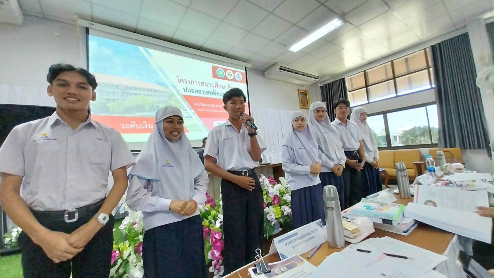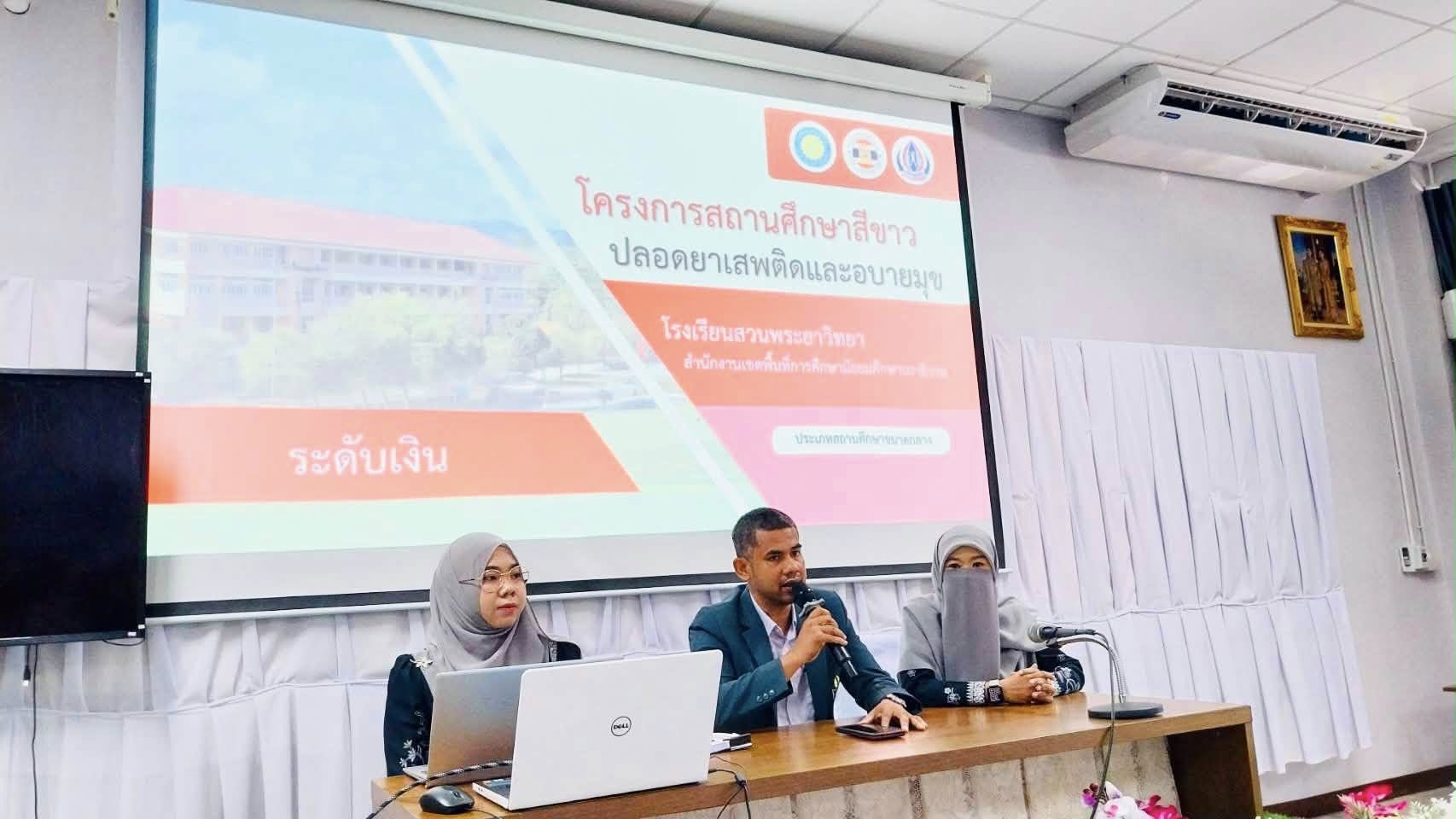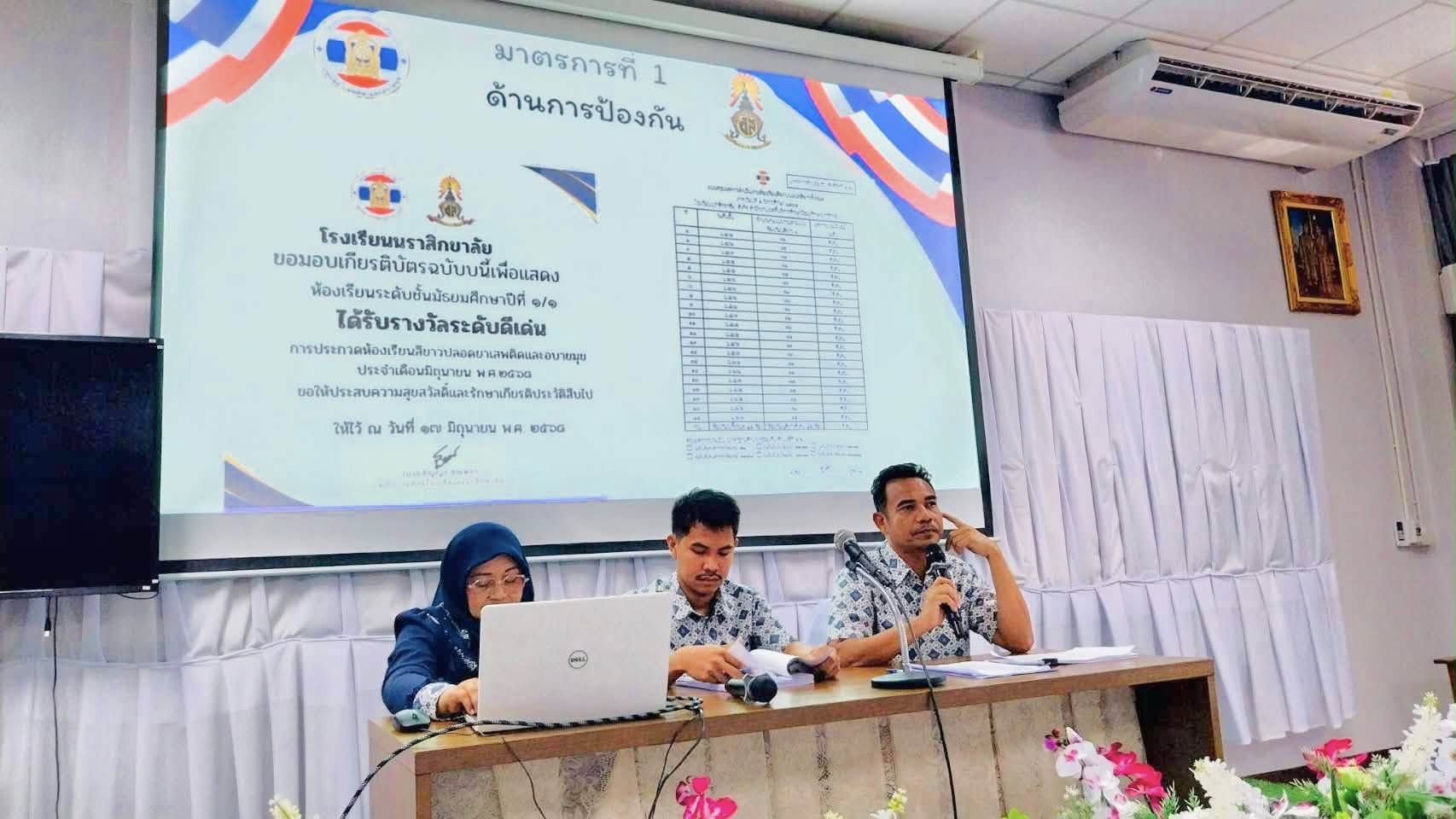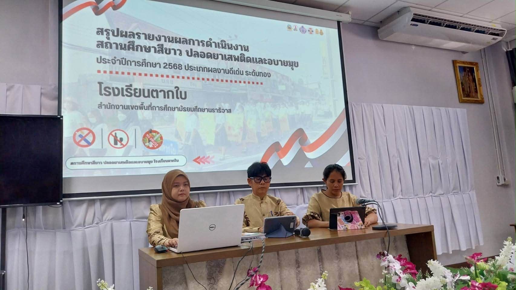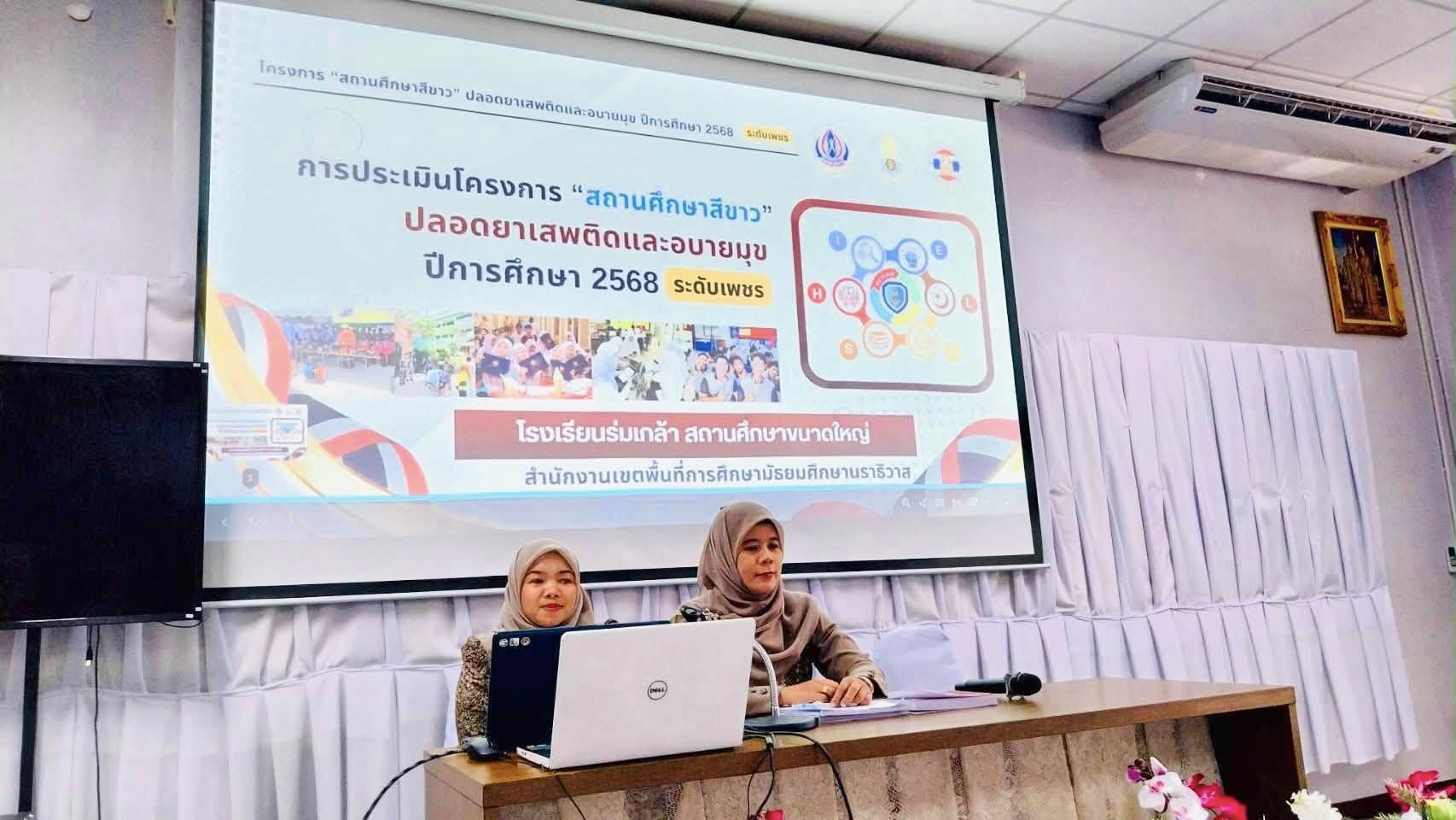 วันที่ 23 เมษายน 2569 นายสุรศักดิ์ เกลี้ยงสะอาด ผอ.สพม.นราธิวาส มอบหมายให้นายภานุพงศ์ แขดสันเทียะ รองผอ.สพม.นราธิวาส เป็นประธานการประเมินผลการดำเนินงานสถานศึกษาสีขาว ปลอดยาเสพติดและอบายมุข ปีการศึกษา 2568 เชิงประจักษ์ ณ ห้องประชุมปิติสุข โดยมีโรงเรียนสงผลงานเข้ารับก่รประเมินฯ จำนวน 5 โรงเรียน ประกอบด้วย โรงเรียนบูกิตประชาอุปถัมภ์ (รักษามาตรฐานเพชร ปีที่ 1) โรงเรียนนราสิกขาลัย,โรงเรียนร่มเกล้า (ระดับเพชร) โรงเรียนตากใบ (ระดับทอง) และโรงเรียนสวนพระยาวิทยา (ระดับเงิน) ซึ่งมีผู้บริหารโรงเรียน ครูและนักเรียนร่วมนำเสนอผลการดำเนินงานและจัดแสดงนิทรรศการทั้ง 5 มาตรการอย่างพร้อมเพรียง ทั้งนี้ เพื่อประเมินผลการดำเนินงานระดับต้นสังกัดและส่งต่อระดับศึกษาธิการจังหวัดพิจารณาก่อนส่งต่อระดับกระทรวงศึกษาธิการพิจารณาตามลำดับต่อไป บรรยากาศเป็นไปด้วยความเรียบร้อย