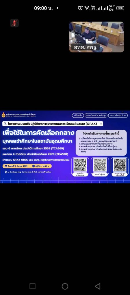 โครงการอบรมเชิงปฏิบัติการการรายงานผลการเรียนเฉลี่ยสะสม (GPAX) เพื่อใช้ในการคัดเลือกกลางบุคคลเข้าศึกษาในสถาบันอุดมศึกษา รอบ 6 ภาคเรียน ประจำปีการศึกษา 2569 (TCAS69) และ รอบ 4 ภาคเรียน ประจำปีการศึกษา 2570 (TCAS70) ผ่านระบบ GPAX OBEC ในรูปแบบการอบรมออนไลน์