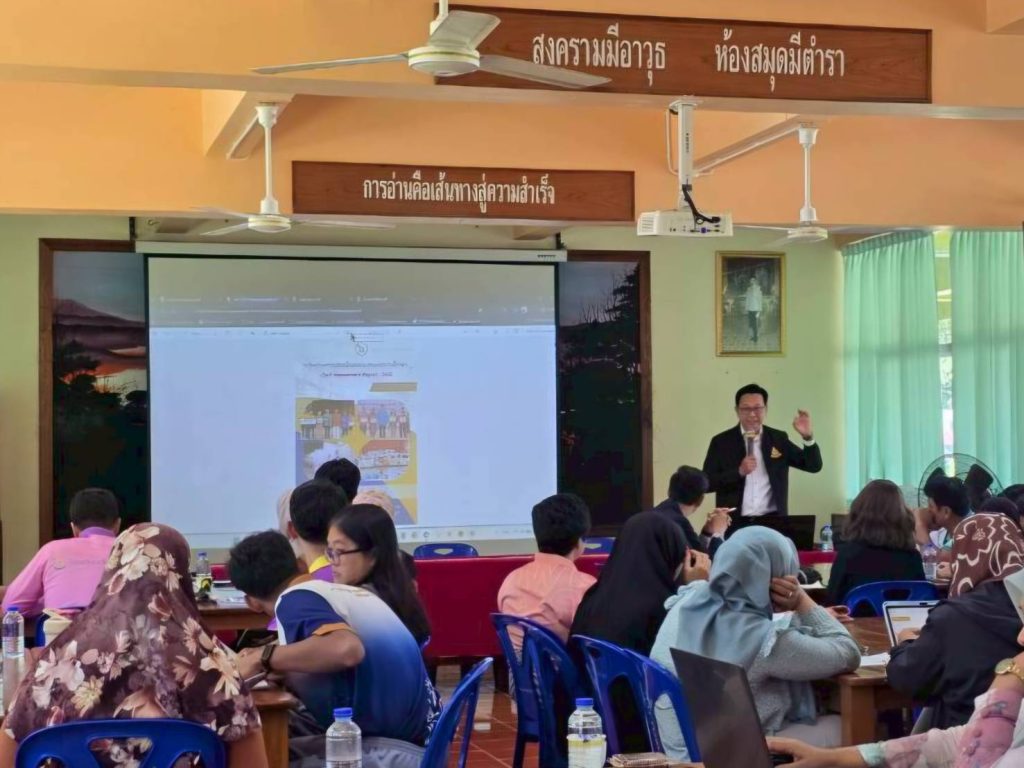 วันพุธที่ 1 เมษายน 2569 นายสุรศักดิ์ เกลี้ยงสะอาด ผู้อำนวยการสำนักงานเขตพื้นที่การศึกษามัธยมศึกษานราธิวาส มอบหมายให้ นายกีรติ วงศ์อัครวินท์ ศึกษานิเทศก์ชำนาญการพิเศษ ปฏิบัติหน้าที่ผู้อำนวยการกลุ่มส่งเสริมการศึกษาทางไกล เทคโนโลยีสารสนเทศและการสื่อสาร (DLICT) ปฏิบัติหน้าที่เป็นวิทยากรการอบรมเชิงปฏิบัติการ “งานประกันคุณภาพภายในสถานศึกษา (IQA)” ณ โรงเรียนตันหยงมัส อำเภอระแงะ จังหวัดนราธิวาส การอบรมครั้งนี้มีวัตถุประสงค์ เพื่อพัฒนาทักษะและความเข้าใจแก่ข้าราชการครูและบุคลากรทางการศึกษาจำนวน 62 คน ในการพัฒนาระบบประกันคุณภาพภายในสถานศึกษาให้มีความเข้มแข็งสอดคล้องกับมาตรฐานการศึกษา พร้อมทั้งร่วมกันกำหนดเป้าหมาย OKRs (Objectives and Key Results) ในฐานะสถานศึกษานำร่องพื้นที่นวัตกรรมการศึกษาจังหวัดนราธิวาส เพื่อใช้เป็นเครื่องมือในการขับเคลื่อนการดำเนินงานและจัดทำรายงานผลการประเมินตนเองของสถานศึกษา (SAR) ให้มีประสิทธิภาพและสะท้อนคุณภาพที่แท้จริงต่อไป